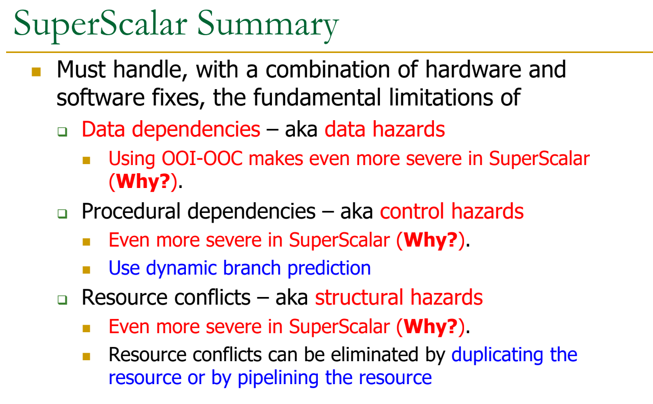 SuperScalar 좋아보이긴한데 단점이 더 보인다. Data dependency는 어느정도 해결이 된다.