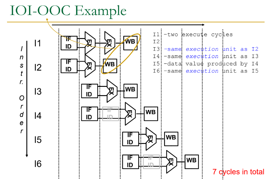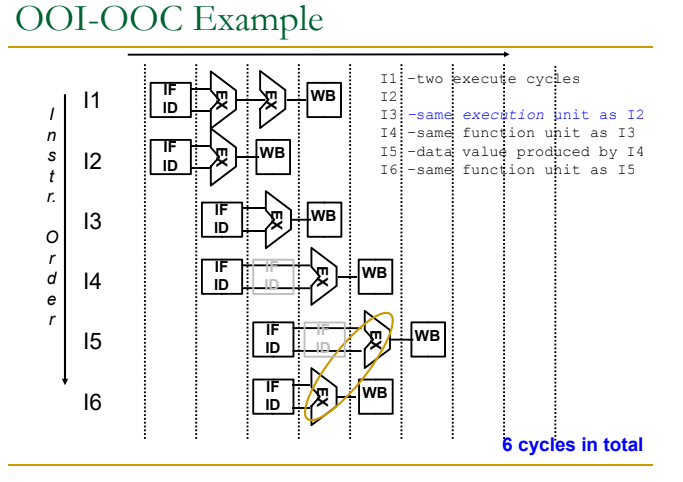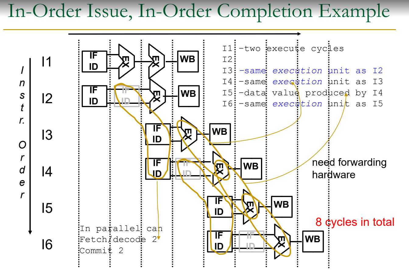 in-Order inssue in-Order completion하기 때문에 순서대로 들어오거나 끝나야됨. 동시는 돼도 먼저는 안된다.