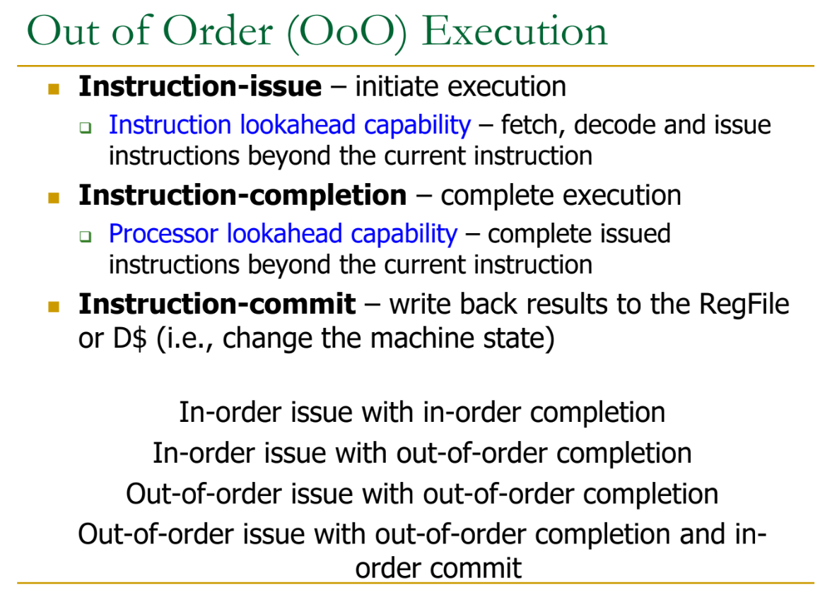 In-order issue with out-of-order completion : 순서대로 들어가서 맘대로 나오는거