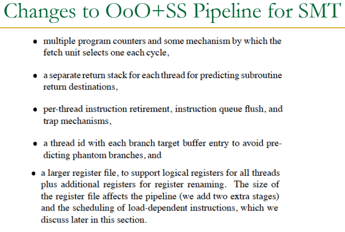 5. Branch Predictor (이것도 공유할수도있고 추가적으로 복제해서 각각의 thread마다 달수도있음 cost와 성능사이에서 적절하게 고민한다)