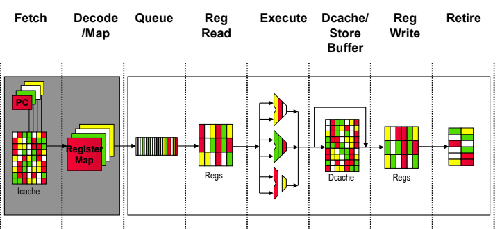 Register Map : 명령어가 들어왔을때 register주소를 실제 physical한 주소로 mapping, data dependence 해결위해 renaming 등등