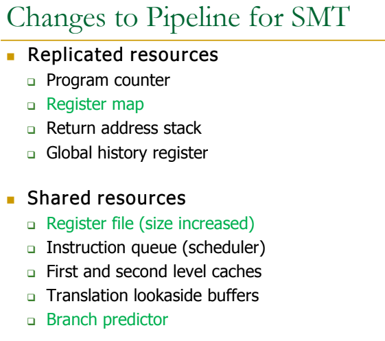 SMT의 idea는 한 클락에서 multi thread의 명령어를 갖고오는거.