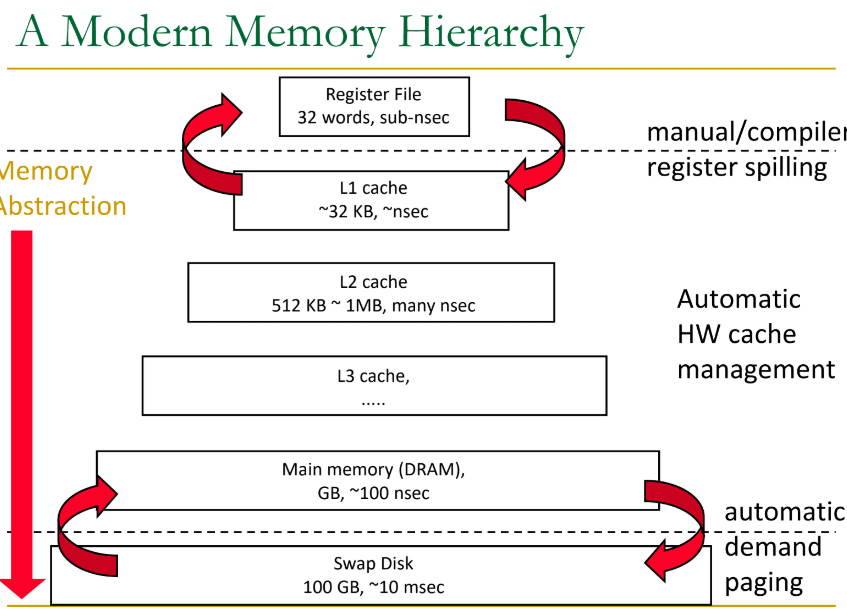 우리는 빠르고 큰 메모리를 원함 근데 싱글 level of memory에서는 제약이 많다.