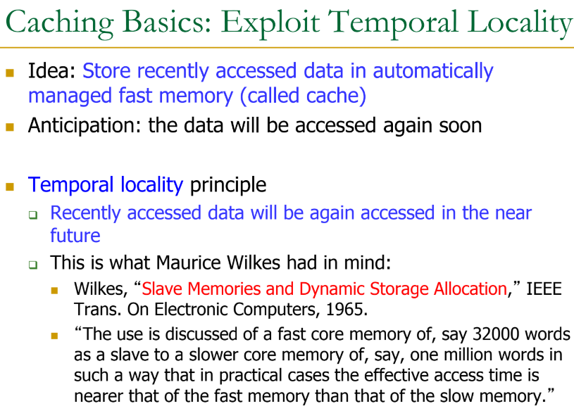Temporal Locality : cpu가 뭔가를 했으면 곧 똑같은 행동을 또 할것이다.