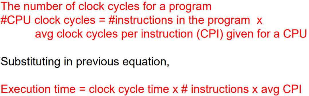 Number of instrs : 컴파일러가 좋으면 같은 프로그램도 명령어가 적어짐 or 컴퓨터가 효율적이면 됨