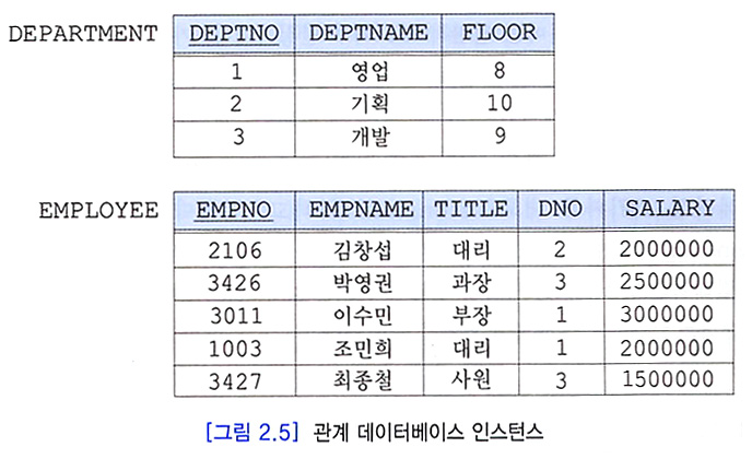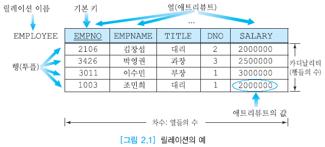 2.1 예시로 보면 EMPNAME의 도메인은 이수민, 조민희, 김동수 등등의 사람의 이름 집합이 된다.