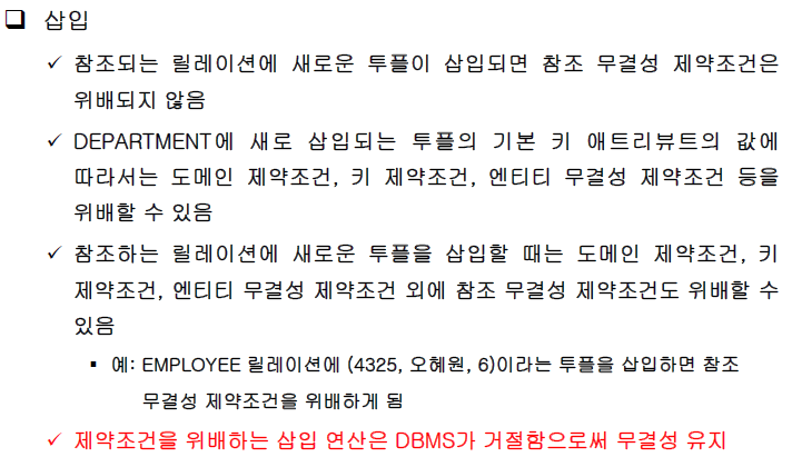 EMPLOYEE 테이블에서 DEPARTMENT의 키를 참조한다. 이때 참조 무결성 제약조건을 지정한다?
