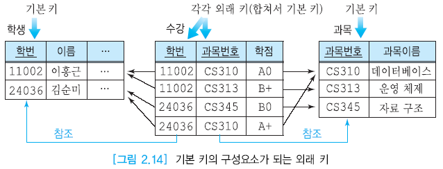 다른 릴레이션의 기본 키를 참조하는 외래 키