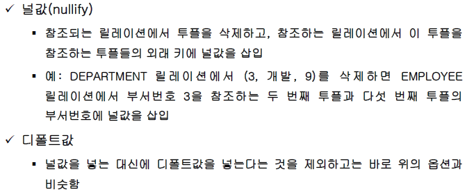 암튼 문제 생겼을때 참조 무결성 제약조건을 만족하기 위해 DBMS가 제공하는 옵션