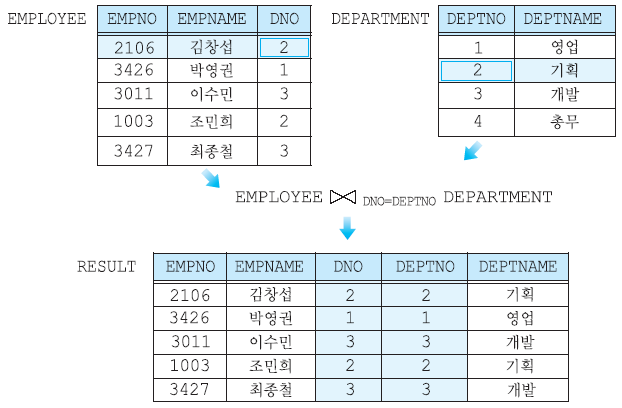 카디션 곱 다음에 원하는 튜플들을 실렉션 이용해서 사용하는게 대부분.