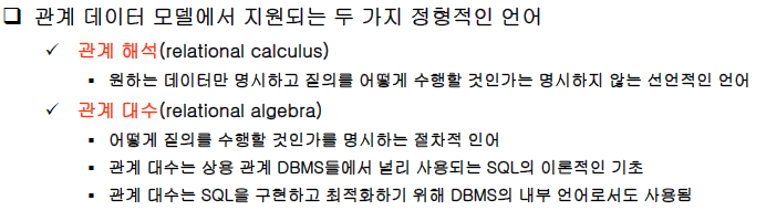 임의의 질의어가 적어도 필수적인 관계 대수 연산자들만큼의 표현력을 갖고 있으면 관계적으로 완전(relationally complete)하다고 말함.