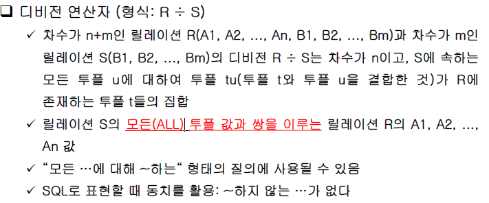 관계 연산자를 통해 복잡한 관계 대수식을 만들 수 있다.