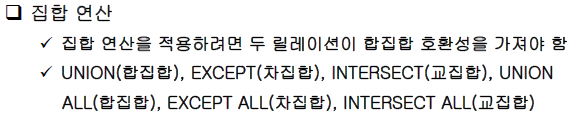 INTERSECT / INTERSECT ALL #ALL하면 중복허용 { A A B} {A A A B} 면 {A A B} (all)
