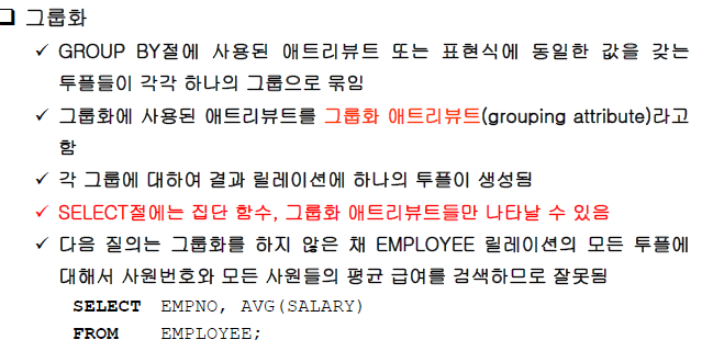 COUNT(*)를 제외한 집단 함수들은 널값을 무시함