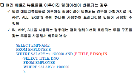 중첩질의에서 여러개나오면 연사자 사용해야한다