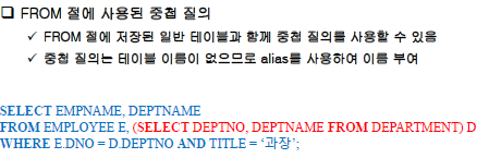 중첩질의가 select절에서도 쓰이긴하는데 잘 안씀.