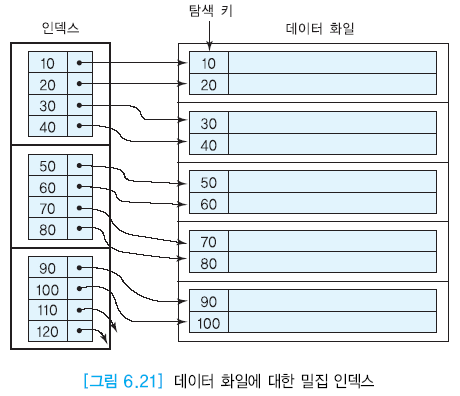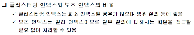 밀집은 정렬되지 않는곳에서 보통 사용 보조인덱스는 정렬되지 않는 데이터에 사용