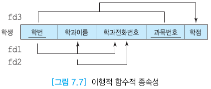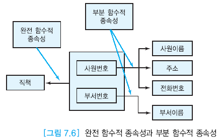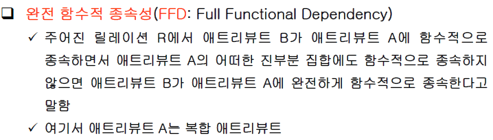 결정자가 두개있을때 두개다 종속하면 완전 둘중 하나만 종속하면 부분함수적 종속성