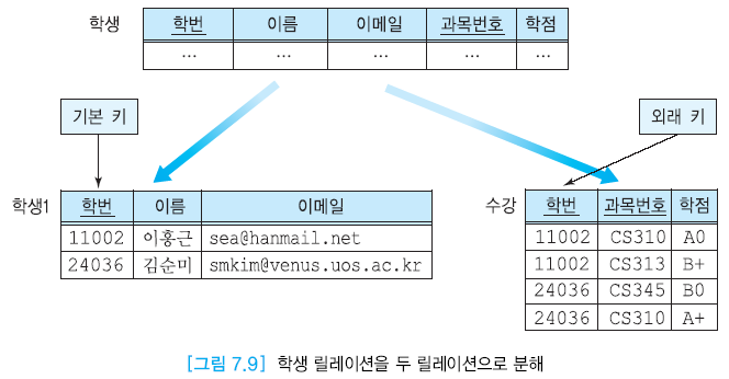 분해한다음 필요한거 있으면 자연조인해서 무손실로 정보 찾기가능