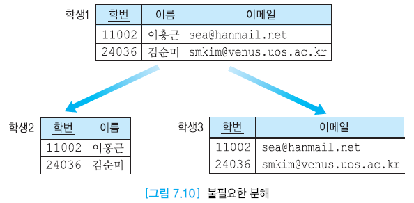 이런건 불필요한 분해 중복도 없는데 분해하면 학번만 중복된다.