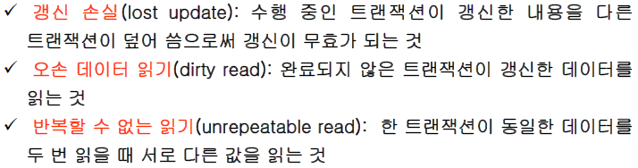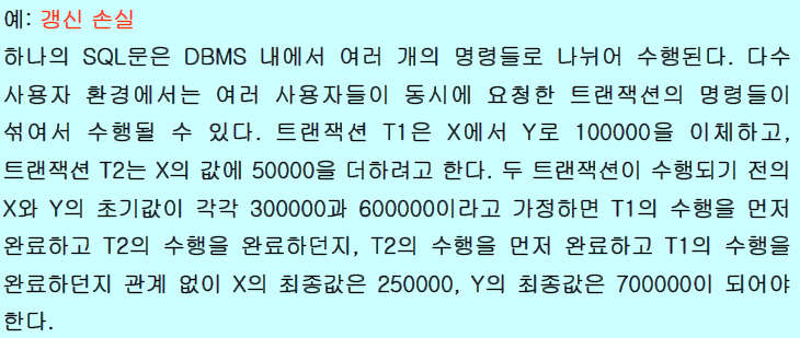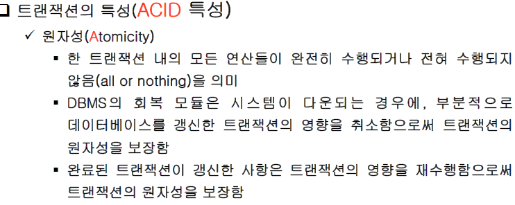 동시성 제어와 회복을 지원하기위해 트랜잭션 제공한다.