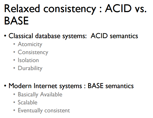 근데 facebook이나 인스타처럼 글로벌한 앱들은 network들이 distribution되어있어서 partition-tolerance를 고려해야됨. 옛날의 ACID(consistency, Availability)만 챙길수 없는 노릇