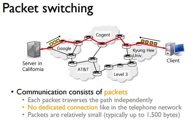 패킷 경로는 각 라우터가 판단해서 그때그때 다름.
