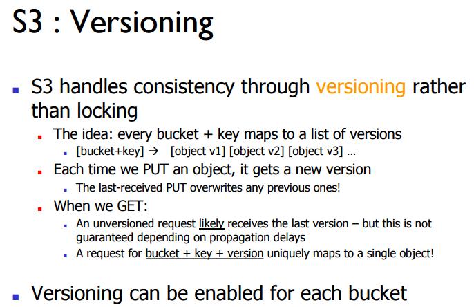 Updates to a single key are atomic. For example, if you PUT to an existing key, a subsequent read might return the old data or the updated data, but it will never return corrupted or partial data.