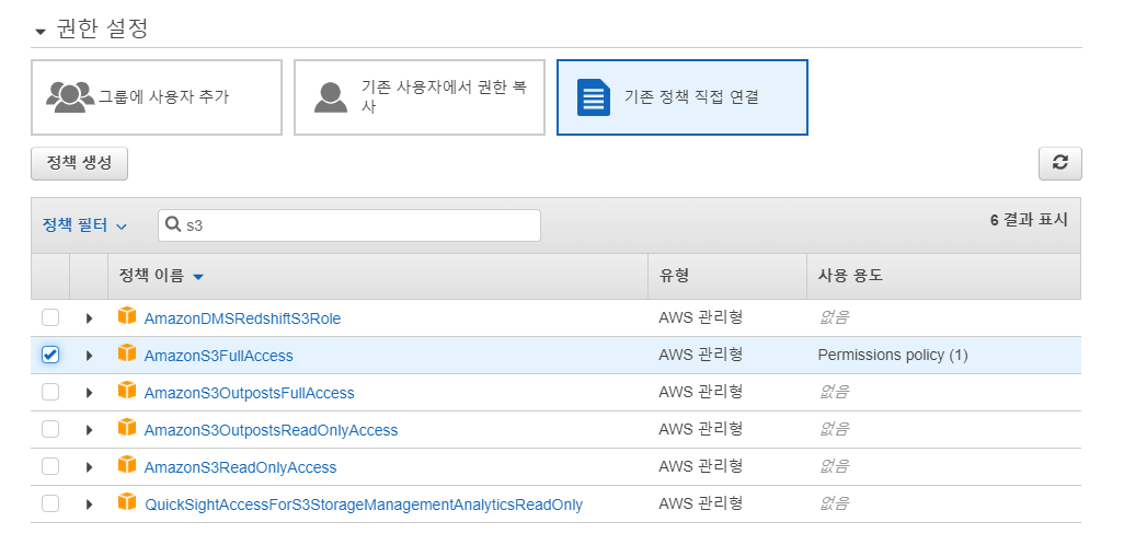 s3 접속해야되니까 권한 설정하기