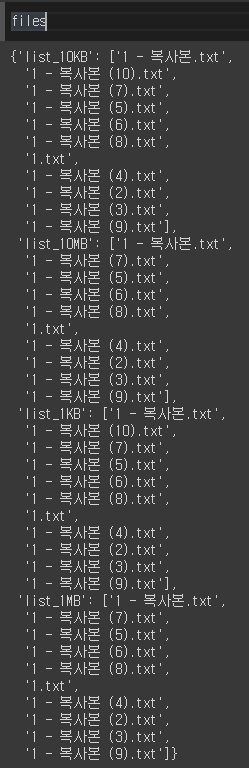 files = dict(_1KB=[],_10KB=[],_1MB=[],_10MB=[])